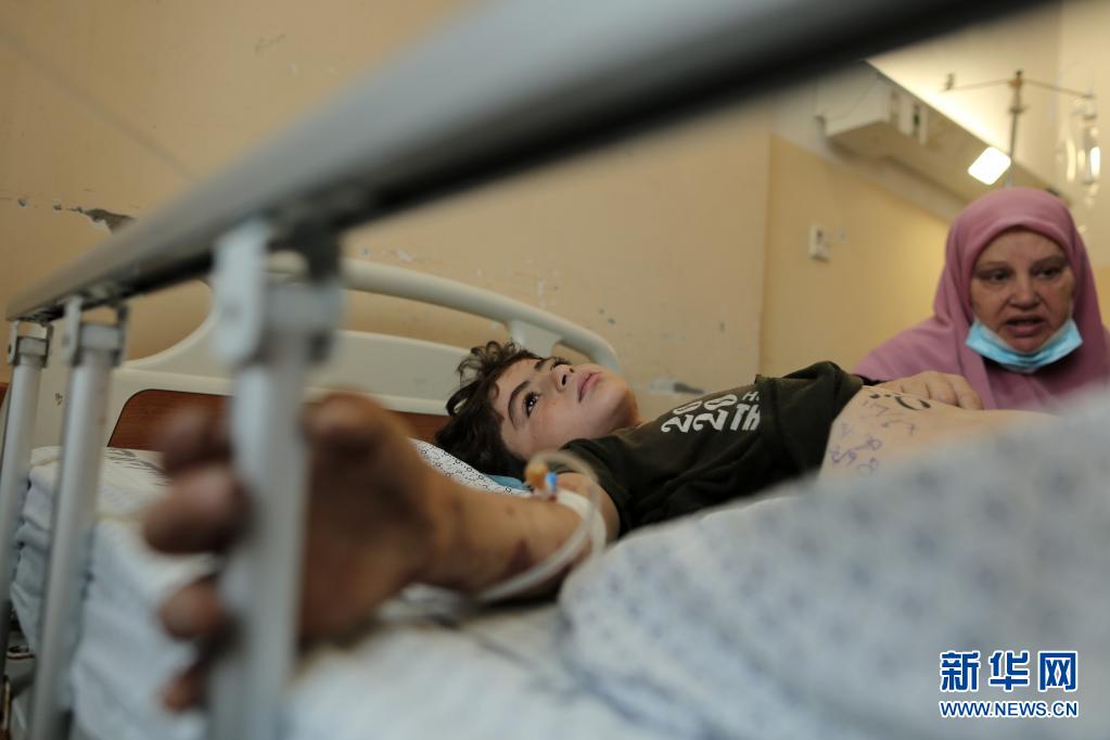 5月20日,一名因空襲受傷的巴勒斯坦兒童在加沙地帶城市汗尤尼斯的醫院中接受治療。
