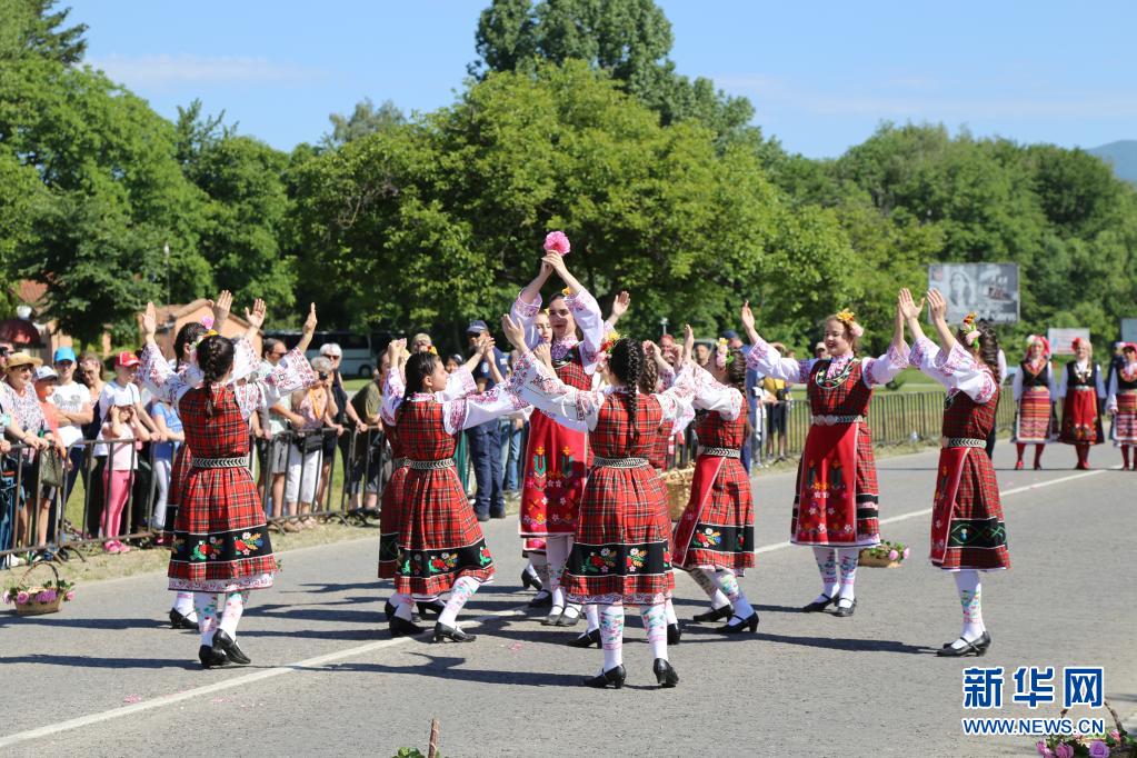 6月6日,在保加利亞卡贊勒克,人們在玫瑰節采摘儀式上表演。
