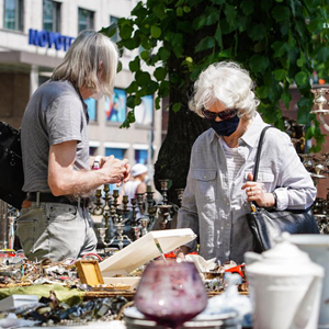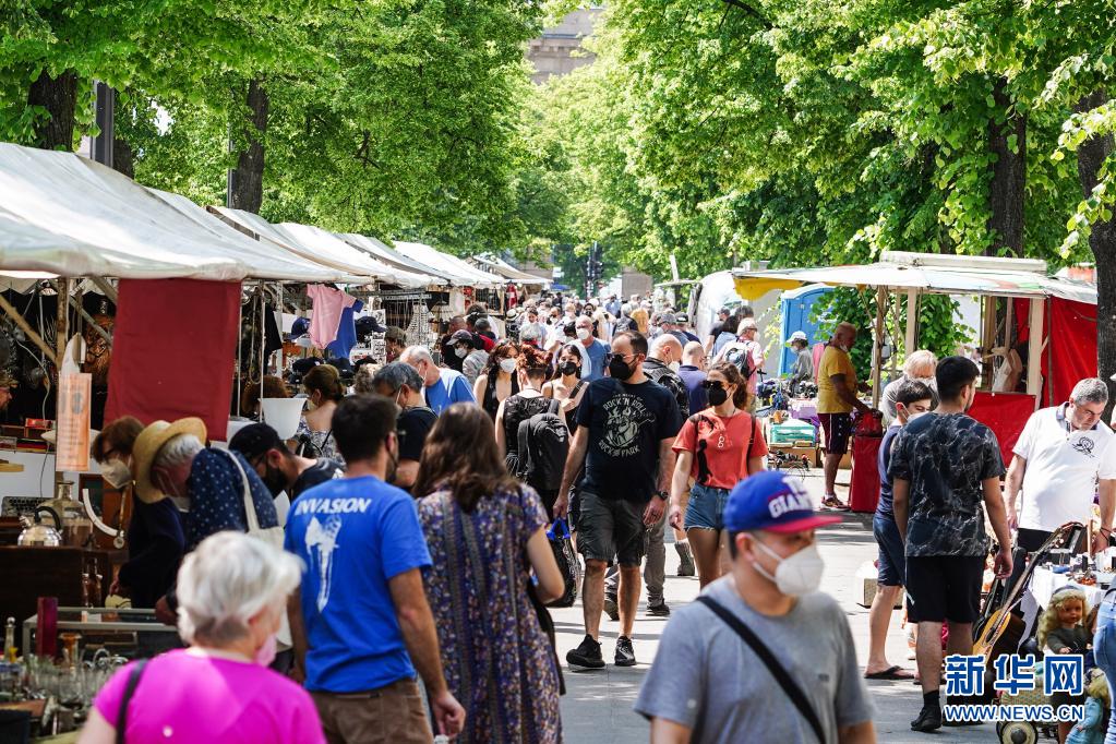 6月6日,人們在德國首都柏林的一處“跳蚤市場”內購物。