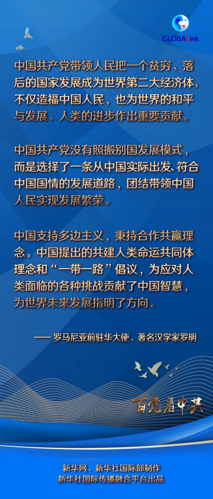 羅明認為,成立一百年來,中國共產黨擔當使命,踐行承諾,贏得人民信任,帶領中國取得偉大成就。