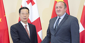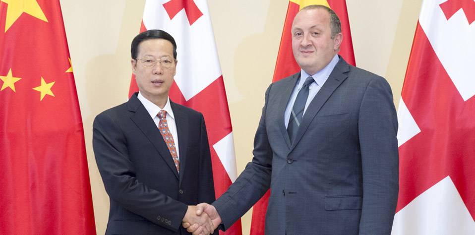 應(yīng)邀訪問(wèn)格魯吉亞的國(guó)務(wù)院副總理張高麗6月3日在第比利斯會(huì)見(jiàn)格魯吉亞總統(tǒng)馬爾格韋拉什維利。